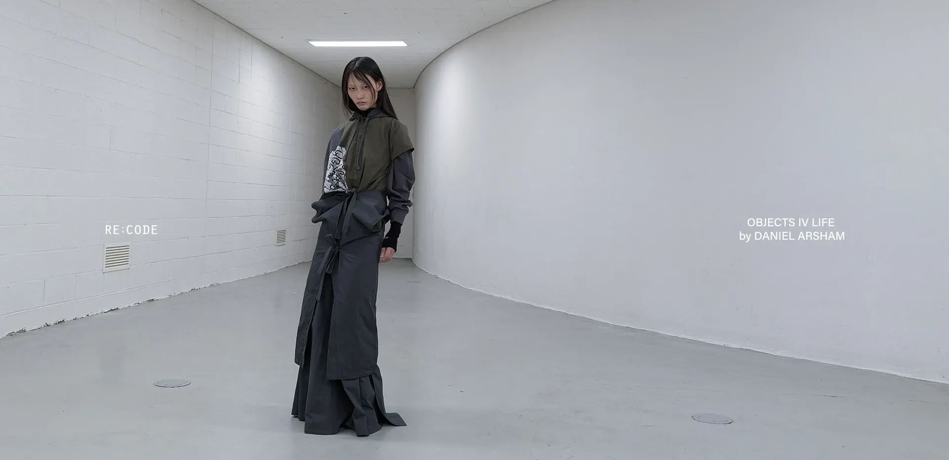 This collection blurs the boundaries between function and expression through sculptural silhouettes and segmented forms, completed with unique details derived from the deconstruction and recombination of Objects IV Life materials. (Source : RE;CODE)